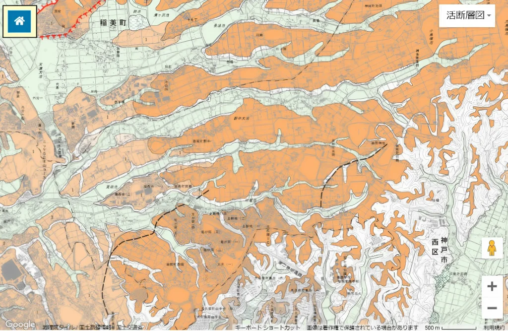 GoogleMAPをベースにしているため、通常の地図表示はもちろん、昔の航空写真やストリートビューも実装しています。