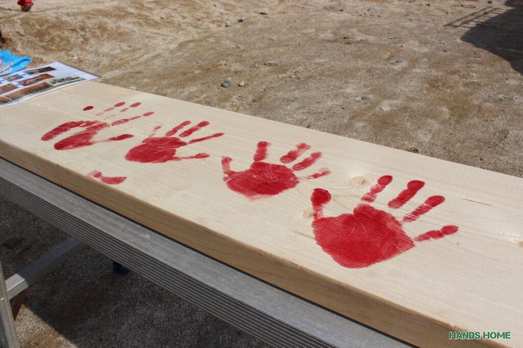 完成したステキな手形板は梁へしっかり打ちつけさせていただきますね。